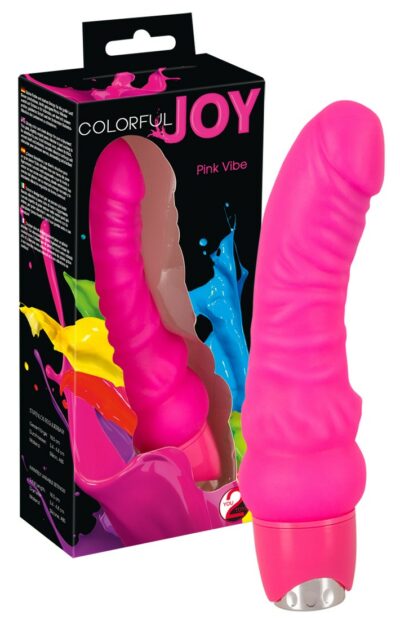 VIBRATORE REALISTICO RICURVO IN SILICONE “COLORFUL JOY” ROSA – 18 CM