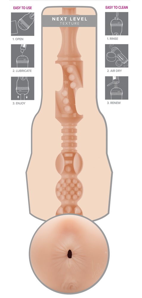 Masturbator Adriana Chechik Next Level from Fleshlight with an original replica of erotic star Adriana Chechik’s anus hole. The various textures inside Adriana’s tight anal canal feel amazing and are perfect for intense, orgasmic massages during a hand job. The sleeve is made out of soft, skin-like Superskin material. Adriana’s signature is also next to the opening. The masturbator can be easily removed from the discreet, non-slip case for cleaning. There is also a lid for the case as well.