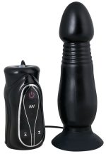 Black anal plug with a seven vibration styles/three speeds motor inside the tip. Strong grip suction base. Full size: approx. 16 cm. 3-4.5 cm diameter. Material: TPE. (Please order batteries separately: 4 x AA/mignon)