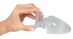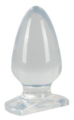 The tapered shape of the butt plug makes insertion very easy. The stopped prevents the plug from gliding in too far and the transparent material provides a great view.