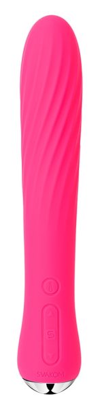 High-quality vibrator made from soft silicone with stimulating grooves at the shaft. With 6 vibration modes and 5 speeds for a varying pleasure. The highlight of this vibrator is the warming function that can heat the vibrator up to 38°C and provides a lovely and very lifelike feeling. Additionally there is the SVAKOM mode that shuffles all modes and speeds randomly. Storage bag and USB cable included.