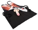 A man´s apron that has the text “BIG BOSS” on it. The apron has a funny extra: an erect plush penis appears when the white material at the front gets lifted up. The plush penis is attached to the material by a string.