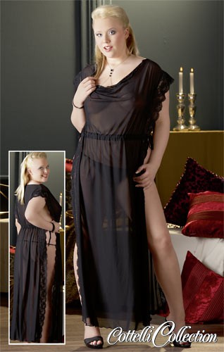 CAMICIA DA NOTTE IN RASO NERO TRASPARENTE