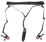 The clamps are attached to the labia vulva to spread them and expose the clitoris. The intensity of the clamps can be adjusted from soft to hard using the adjusting screws. In addition to the clamps, the string features a small vibrator attached to the cord with clitoral stimulation beads. The battery is included.