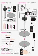 Sex machine with an adjustable stand and two attachments. Can be adjusted via remote control and is rotatable up to almost 360°. It offers up to 150 multi-speed thrusts per minute. Made for hands-free use and in a slim and modern design. 1.5 meters cable length with mains plug (Schuko plug Type F). Attachment for double penetration included.