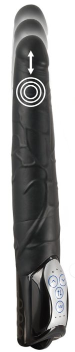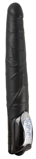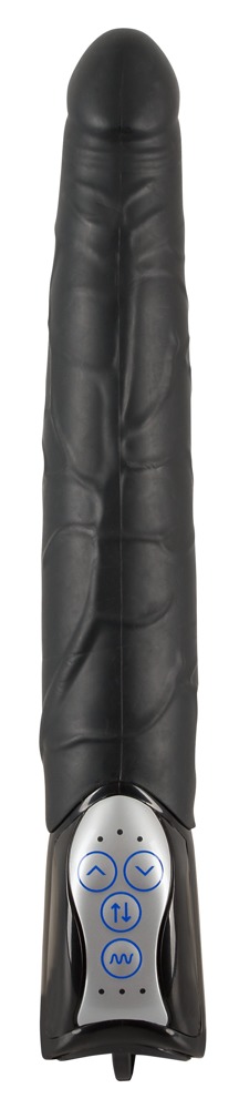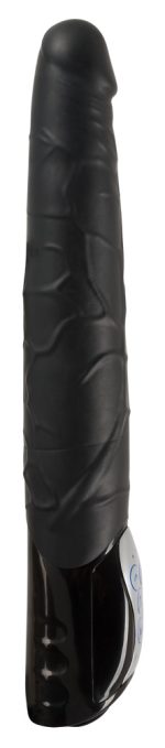 This vibrator is great because it has 3 thrusting speeds and 7 vibration modes. Both functions can be controlled separately for individual stimulation from the pronounced glans and veins on the shaft. Please order batteries separately (3 x AA).