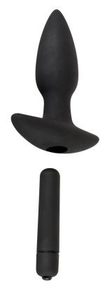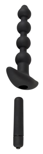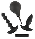 The set contains a plug, anal beads and an intimate douche. There is an included vibrator that can be inserted into the plug or anal beads for extra fun! Plug approx. 15 cm long, Ø 2.1 to 3.5 cm, beads approx. 18 cm long, Ø 1.2 to 3 cm, intimate douche approx. 17 cm long, douche tube approx. 5.5 cm long, Ø 6 to 9 mm. Material: silicone, ABS, PVC. Please order batteries separately: 1 x AAA.
