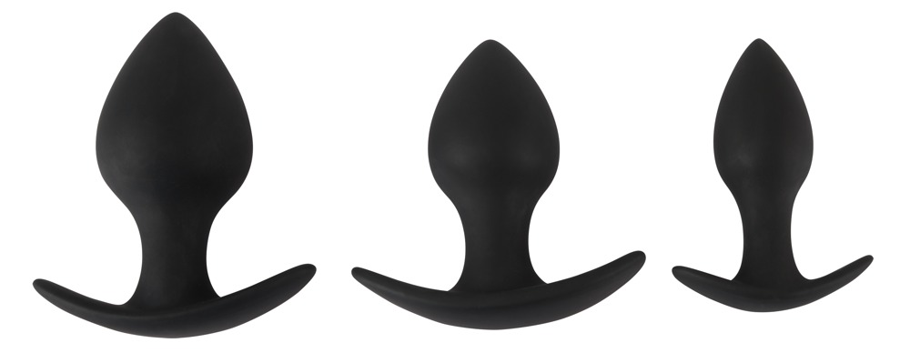 3-piece butt plug set with a wonderful soft texture. The different sizes are perfect for gradual anal training. The plugs are extremely easy to insert because of their cone shape and they provide a very fulfilling feeling. With an extra large base for secure fit. They are really easy to use.