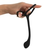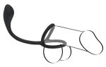 Enjoy triple stimulation with this black butt plug from “Black Velvets” – it won’t just be the back door that gets stimulation, the front will too! The integrated rings go over the penis and testicles, and create the blood flow restriction effect that makes the erection even harder, more powerful and above all longer-lasting. The butt plug itself has a large head for spot-on prostate stimulation (also known as the P-spot which is a man’s pleasure spot). The butt plug’s narrow shaft goes seamlessly into the cock and testicle rings and provides simultaneous perineum stimulation.