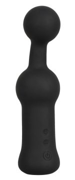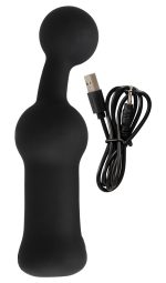 The wonderfully shaped Prostate Vibrator from Black Velvets has a flexible and slightly curved ball-shaped tip and large ball on the shaft that pleasures the prostate and anus with vibrations during an anal massage. The 10 vibration modes provide exciting backdoor variety and can be controlled with the +/– buttons on the toy. The Prostate Vibrator has a velvety soft touch surface which feels great against the skin during anal pleasure. It can be recharged with the included USB cable.