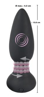 This butt plug provides hot backdoor action with its 7 rotation modes. It can be controlled with the remote control which means that it is perfect for exciting couple’s games or hot solo fun. Numerous small beads rotate in the shaft and create unbelievable stimulation. The base stops it from sliding in too far. It is also waterproof which means that it can have hot fun in the bath or the shower. Includes a USB cable and a battery for the remote control (1 x 23A).