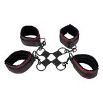 Submit in style with the Scandal Hog Tie. Featuring four plush, adjustable cuffs and a sturdy central O-ring connector, this bondage tool is perfect for secure, yet comfortable restraint.