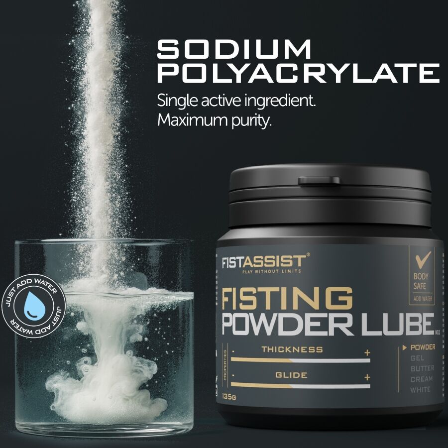 The Fist Assist powder lubricant is the ultimate solution for those seeking maximum control, precision, and performance. Its innovative powder formula is activated simply by adding water, allowing you to create the ideal consistency—from a light, silky texture to a thicker, more cushioned feel.
