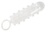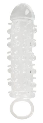 Transparent penis sleeve from Crystal Clear with a 2 cm extension, stimulating dots and a ball ring. Also suitable for dildos and vibrators.