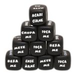 HIGH QUALITY 25 mm HARD BLACK DICE. PASSION DICE! WHAT ACTION DO WE DO TODAY? EAT ME-KISS ME-TEACH ME-TOUCH ME-SUCK ME-SQUEEZE ME. Enjoy the chance of the dice, a great solution for sexual indecisions. They will surprise you with their simplicity, you can take it anywhere and any place they will give you a lot of joy.