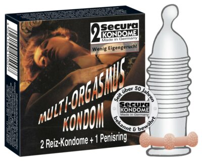 PROFILATTICI STIMOLANTI E ANELLO FALLICO SECURA “MULTI-ORGASMUS” – 2 PEZZI
