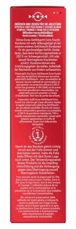 The thin, transparent condoms, Gefühlsecht Extra feucht from Durex, are covered in a lot of silicone-based lubricant for an intense and smooth feeling. Compared to conventional cylindrical condoms, the innovative anatomical Easy-on shape of the Durex condoms offers a bit more space in all the right places, making them easier to put on and roll off – ensuring a comfortable fit and an intense sensation.