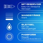 These transparent natural latex condoms, Pleasure Me from Durex, provide intense stimulation during intercourse. They are covered in a large amount of silicone-based lubricant. They are also in an anatomical easy-on shape, are a regular size and have a tapered tip.