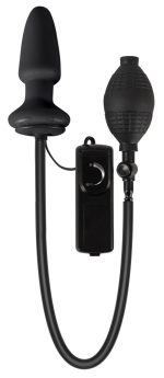 Insert it into the vagina or anus and then inflate it – now you can enjoy the pleasurable sensations it provides. It presses against HER bladder and creates wonderful orgasms and it stimulates HIS prostate. Orgasms are also guaranteed when the vibrations are turned on! Covered in smooth black latex. 12 cm long, Ø approx. 2.5 to 3.8 cm – can be inflated up to a size that will suit you! (Please order batteries separately: 2 x Mignon).