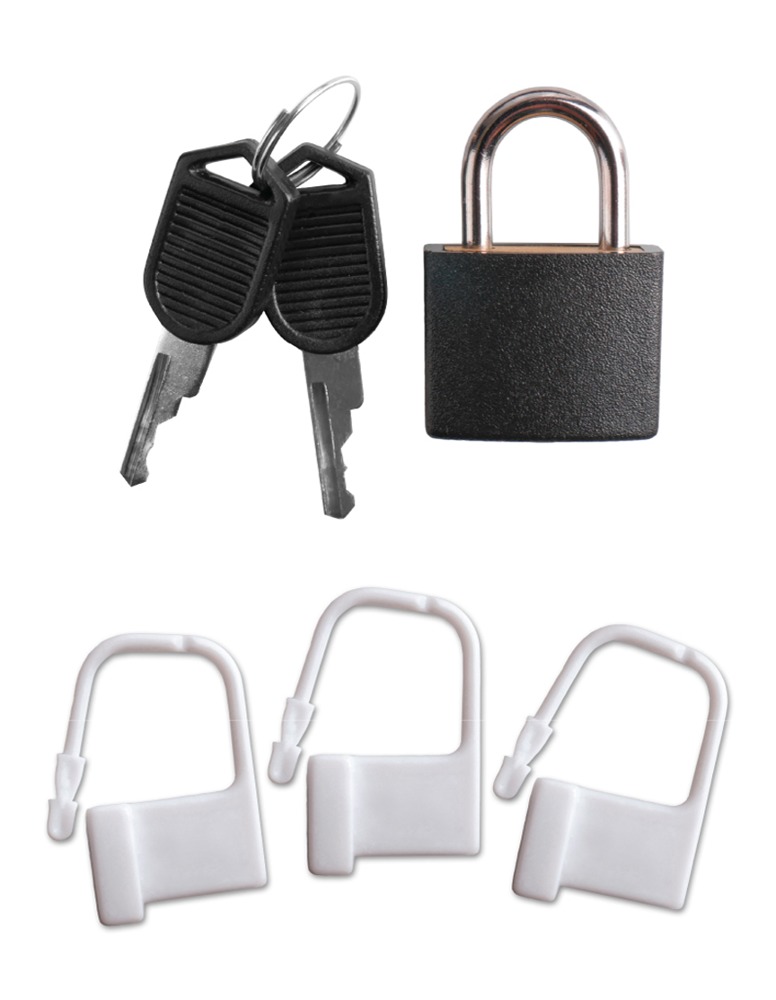This cock cage is perfect for making a slave chaste! It always fits securely because the cock and ball ring are adjustable and this means that it will fit any penis. The included metal padlock is very important and it can be locked securely with the 2 keys. The 3 included, disposable, plastic keys are for people who aren’t ready for the metal padlock straight away.