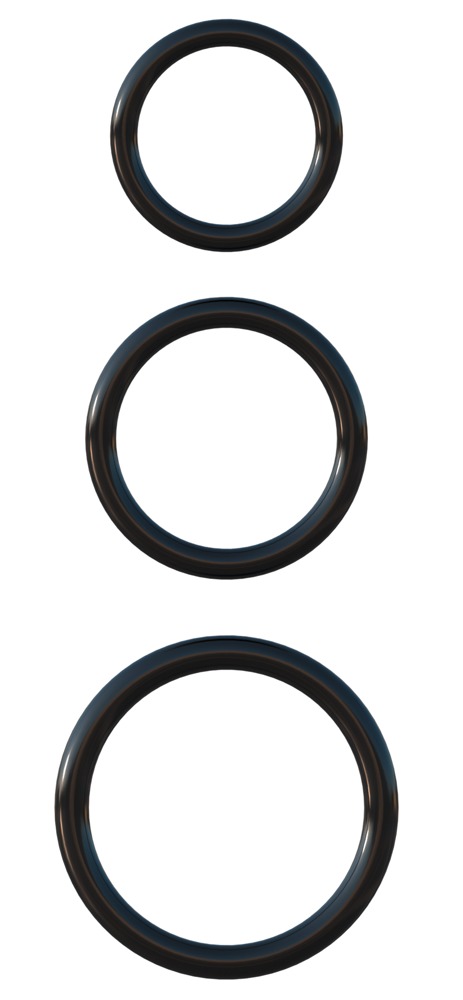 Set of three cock/ball rings with different sizes made out of silicone for comfort and safety. They are very flexible and can easily be slipped over the penis and the balls to provide their user with rock-hard and long-lasting erections.