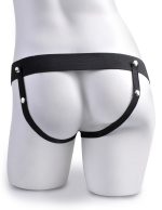 Dildo: complete length 17.8 cm, insertion length 15.2 cm, insertion depth 10.2 cm, inner Ø 4.1 cm, outer Ø 4.8 cm; waist circumference of strap-on 71.1-132.1 cm. PVC, ABS, polyester.