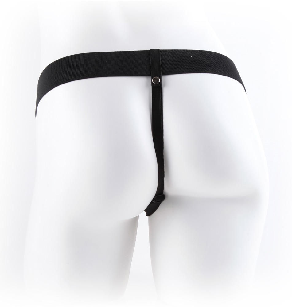A realistic, hollow strap-on dildo with large testicles and a stretchy strap-on harness. It can be worn on the penis for more length and girth or used for hot pegging fun.