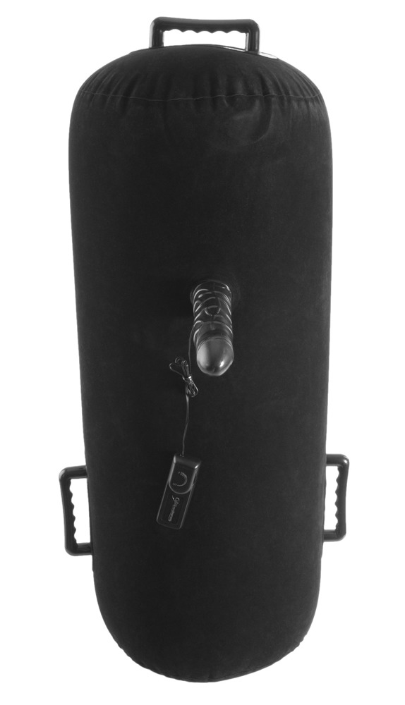 Inflatable cushion with an integrated multi-speed vibrator in a penis look with pronounced veins. 3 sturdy handles provide support when enjoying various riding positions. The variable multi-speed vibration can be adjusted from gentle to powerful with the remote control on a wire. The cushion has a skin-friendly flocked cover in a velvet look and can be washed. (Please order batteries separately: 2 x AA).