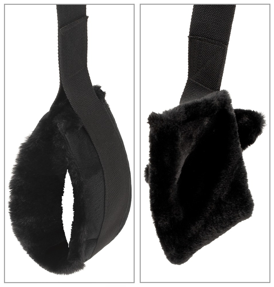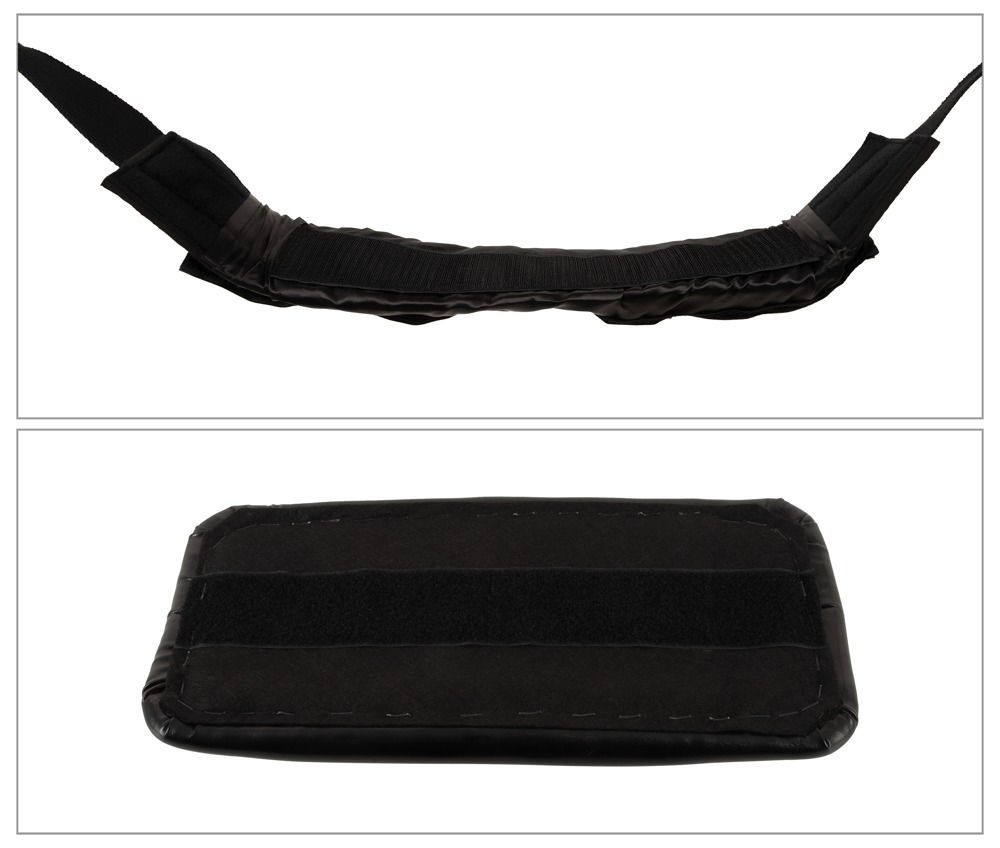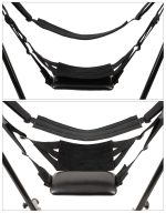 The soft seat cushion and the two soft reclining cushions for the back and head/neck as well as the two comfortable plush support loops for hands, legs or feet hang from tear-proof straps. All straps are individually adjustable to fit in length. The seat can also be removed (hook-and-loop fastener).