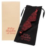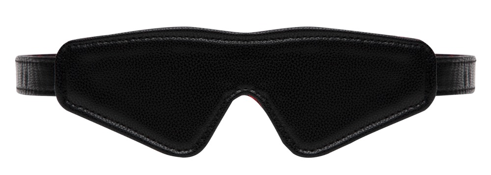 The blindfold Sweet Anticipation Blindfold from Fifty Shades of Grey can be worn both ways. One side is in a black leather look and the other side is in a black/red satin rose design. It is opaque, comfortable and padded. Fits any head size.