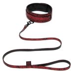 Collar Sweet Anticipation Collar and Lead from Fifty Shades of Grey that can be worn both ways. It also has a matching leash. One side of the collar is in a black leather look and the other side is in a black/red satin rose design. It is softly padded and can be adjsuted with the hook and loop fastener. There is a small ring at the front to connect the leash with hand loop which comes in a matching design as well.