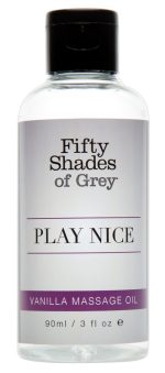 The luxurious, high-quality Play Nice Vanilla Massage Oil from Fifty Shades of Grey has a sensual vanilla scent which intensifies and whets the sexual appetite and the senses! Perfect for exploring a partner’s body during a massage or for enjoying long-lasting foreplay. 90 ml.