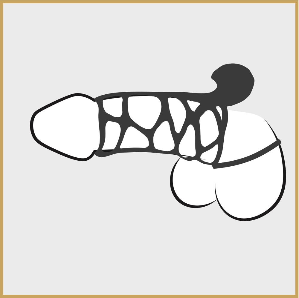 This penis sleeve made out of soft silicone material has a distinctive lattice texture and will get the penis into top form for erotic moments of pleasure. The tight-fitting, erection-enhancing sleeve is simply slipped over the erect penis where it sits firmly and snugly without slipping due to the integrated ball ring. The small, powerful mini vibrator is put into the loop, where it provides thrilling additional stimulation for the clitoris. It is waterproof and can also be used in the shower or bath. Includes batteries (3 x LR44) for the mini vibrator.
