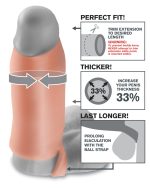 GUAINA FALLICA CON ESTENSIONE ADATTABILE E RILIEVI STIMOLANTI