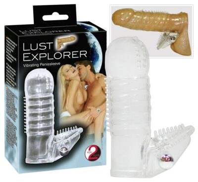 GUAINA FALLICA CON RILIEVI STIMOLANTI E VIBRAZIONE LUST EXPLORER””