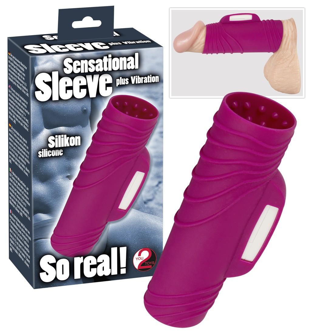 GUAINA FALLICA IN SILICONE CON RILIEVI STIMOLANTI E VIBRAZIONE