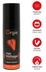 The kissable stimulation gel, High Voltage Strawberry Liquid Vibrator from Orgie, creates an intense tingling and vibrating feeling in the intimate area. It is also a tasty strawberry flavour. The electrifying arousal gel makes intimate moments extremely fun and tasty – alone or with a partner.
