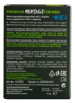 Dietary supplement Pure Moringa + Maca Man Power from HOT specifically for men that contains L-arginine, moringa, maca and Tribulus terrestris. Vegan.