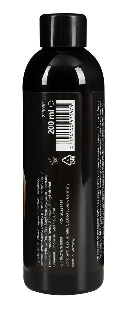 High-quality oil with a seductive jasmine scent that whets the appetite for more! Water-soluble and washable. Made in Germany.