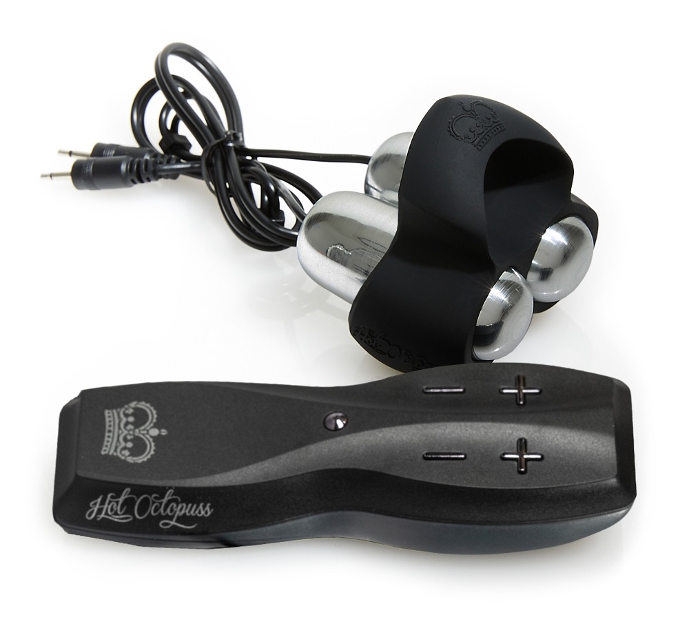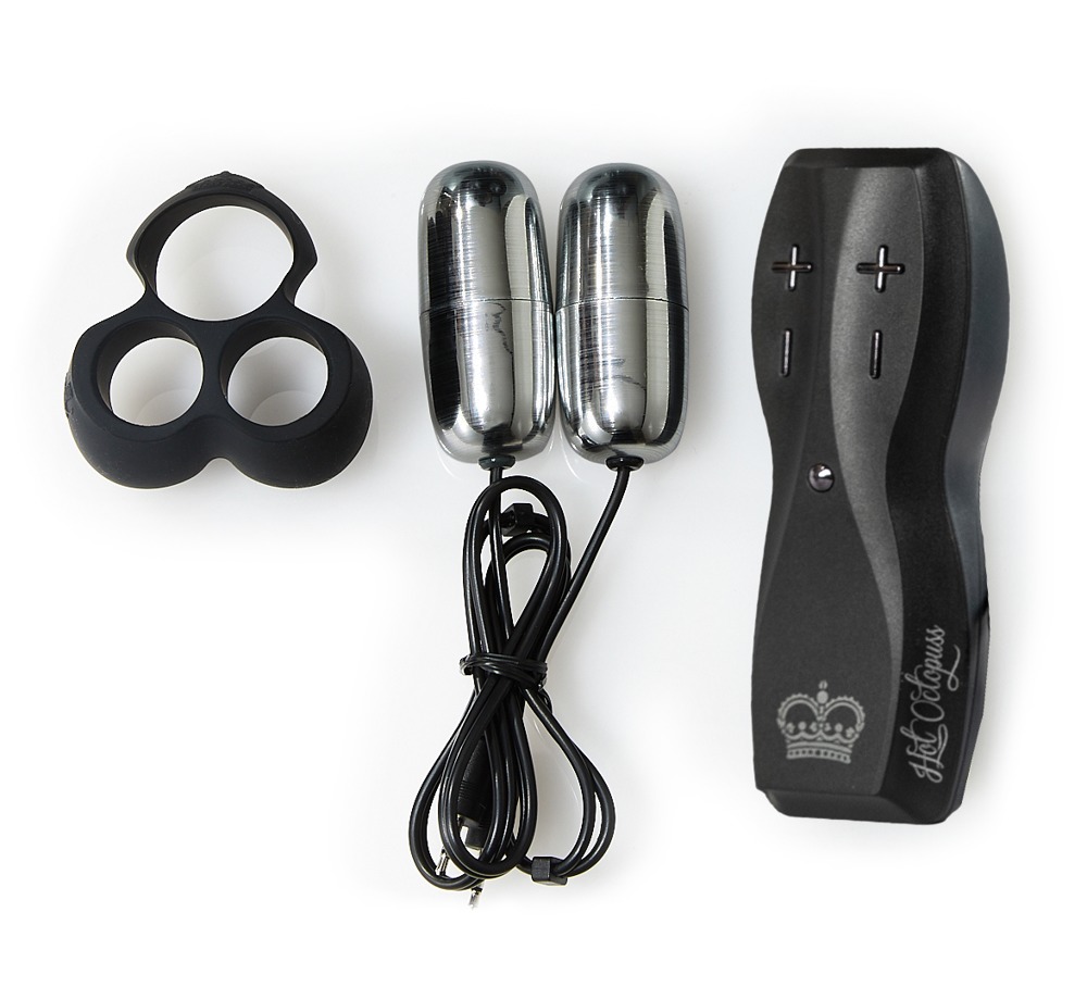 Hot Octopuss developed their first vibro cock ring, JETT, that is worn directly at the frenulum, just below the tip of the penis. Its innovative treble and bass technology stimulates Him with contrasting frequency waves. In order to do so, the JETT is equipped with 2 removable vibro-bullets with differently sized motors: The treble bullet creates high frequency vibrations, while the bass bullet provides low frequency vibrations. The Bullets’ intensities are separately adjustable with the wired controller. Additionally, the JETT has 5 intense vibration modes offering unique vibration rhythms with high and low frequencies in variable intensities. The Jett is pleasantly flexible, while also providing a tight fit for an intense and pleasurable stimulation without using hands.