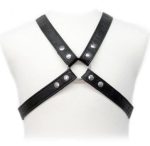 Practice BDSM with this leather harness for men, with adjustable cross-shaped straps.