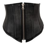 Black waist cincher made out of lamb nappa leather. The waist cincher has a zip at the front and lacing at the back. The bones inside the waist cincher shape the waist. Perfect for a private rendezvous or for visiting a nightclub or swinger club.