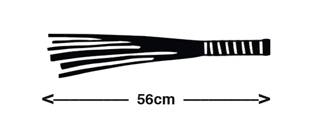 Black flogger from ZADO with numerous tails and a wavy wooden handle. The handle is covered with food-safe varnish, which means that it is perfect for all kinds of penetrative games. The soft leather tails are perfect for gentle strokes or hard punishment.