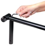 Floor pillory kit with assembly equipment and two different sized supports for the bondage collar. The pillory can be assembled and dismantled very easily: just attach the soft padded collar, handcuffs and ankle cuffs to the frame. The frame can be adjusted in length. All the restraints can be adjusted with the buckle fasteners. Black.