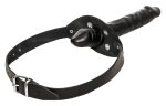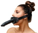 Gag from ZADO with adjustable black leather head strap and a removable external dildo (press studs). Dildo and gag are made of latex and both have a penis shape with distinct head.