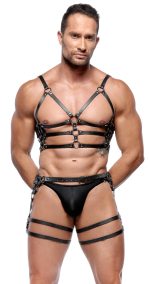 Robust harness set from ZADO made of black leather straps with silver-coloured metal details. Consisting of a chest and hip harness with firmly locked thigh straps. Both parts can be adjusted with buckle fasteners for a perfect, comfortable fit.