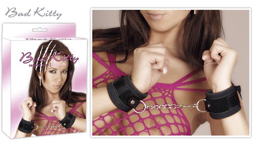 MANETTE IN CAMOSCIO CON CHIUSURA IN VELCRO BAD KITTY “HANDCUFFS” NERO