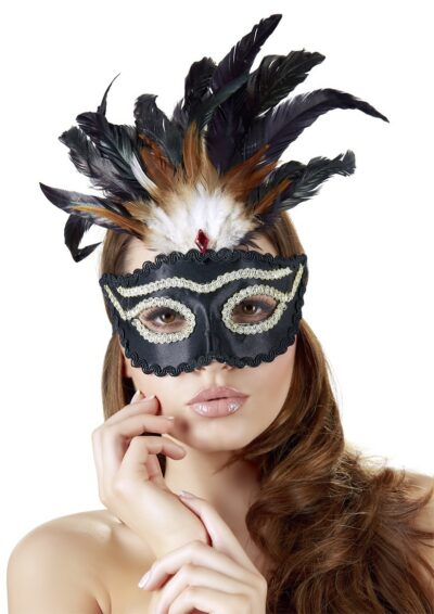 MASCHERA CON PIUMA E DECORAZIONI DORATE