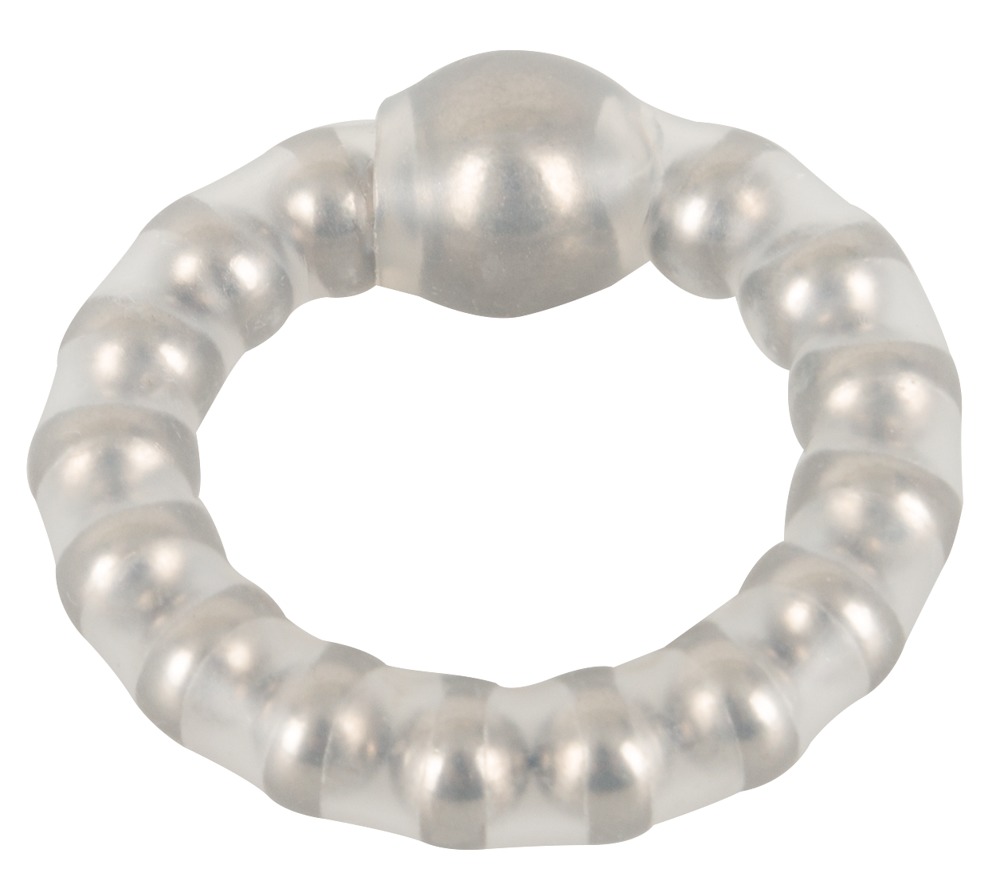 For hard erections! Cock ring with massaging, stimulating metal beads inside a transparent, silicone-like sleeve. Tight-fitting – the ring grips your penis tightly for long-lasting sexual pleasure. Ø 2.5 cm (flexible).