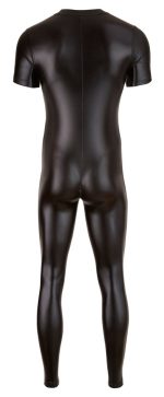 This black jumpsuit is made out of very shiny, extremely stretchy wet look and has a 3-way zip at the front that goes over the crotch, which is just waiting to be opened… With long, narrow legs and short sleeves. 92% polyester, 8% spandex.